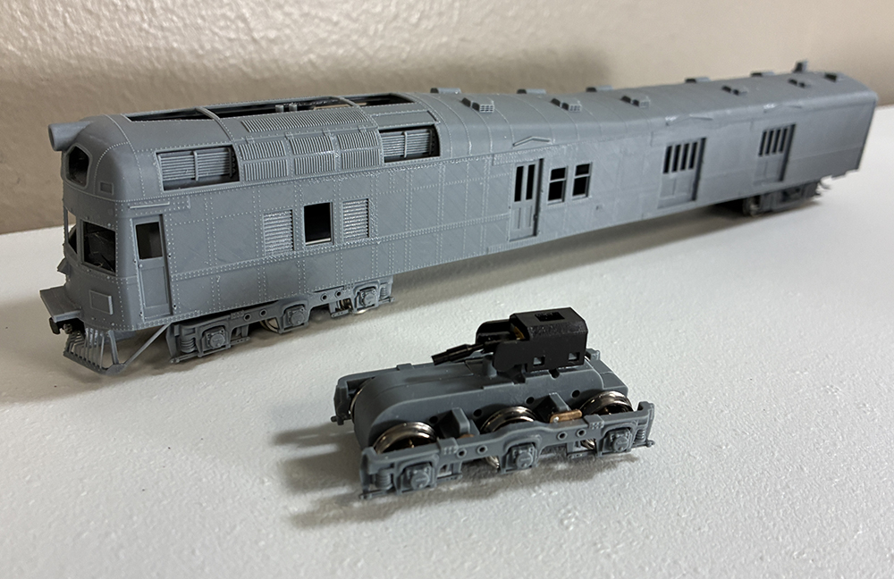 Dave McMulllian displayed a 3D print project he is working on. It is the B&M diesel car 1140, the Sacred Cow. It includes a design for a 3 axle power truck. He made the components using a 3-D printer he just purchased. This was his first big item try.